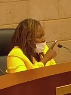 In 2022, Owens was named as a defendant in a federal lawsuit alleging that she violated the civil rights of four constituents by interrupting or censoring their remarks during public comment time at council meetings.[16][63][73][74][75][76][77]