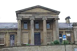 Monkwearmouth is a former railway station that served Monkwearmouth in the English city of Sunderland, from 1848 to 1967. It was built in 1848 to a design by Thomas Moore[1] and was once the main railway station in the city.[2] The railway station closed in March 1967 and featured a restored booking office dating from the Edwardian period. The building was used by the Monkwearmouth Station Museum from 1973 to 2017[3] and as of 2018 is home to The Fans Museum.