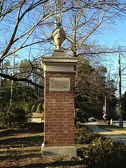 In the late 1980s, an MLPA committee led by David Robertson undertook a "monumental" project on behalf of their neighborhood. They decided to duplicate the Lenox Park marker at 878 Plymouth Road. Built in the 1920s, it was the only monument that remained intact. The committee raised enough funds to repair six existing markers and build 12 new ones. As the Winter 1989 MLPA Newsletter noted: "The new monuments will help define and unify the Morningside-Lenox Park area and will help focus attention on intown residential living and show our 'pride of place.' A unified look will help keep the freeways out of MLPA and show D.O.T. we are here to stay."