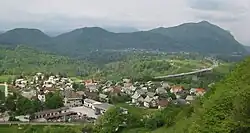 Moste is the site of two known mass graves associated with the Second World War. The Baud Fallow 1 and 2 mass graves (Slovene: Grobišče Baudova ledina 1, 2) are located north of the settlement and contain the remains of six to 12 Croatian soldiers. The first grave lies in a former gravel pit in a clearing, surrounded by bushes. The grave site has been leveled off.[7] The second grave lies in the woods north of the first, on a small plateau, next to a fence at the bottom of the slope of Mount Ajdna.[8]
