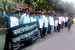 The movement demanding trial of war criminals (Bengali: যুদ্ধাপরাধীদের বিচারের দাবিতে আন্দোলন) is a protest movement in Bangladesh, from 1972 to present demanding trial of the perpetrators of 1971 Bangladesh genocide during the Bangladesh Liberation War from Pakistan.[4]