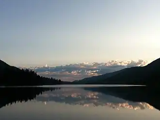 Moyie Lake is a small, narrow kettle lake[1] in southern British Columbia, located along the Moyie River. While building the Crowsnest Pass Railroad, this was the hardest part to build the tracks. The walls of the land around it are very steep and short. It is a lot like Swan Lake to the south in Montana. The lake is located between Cranbrook and Creston. The small town of Moyie is located at the south end of the lake.