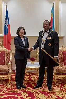 - ^ Team, Internet. "President Tsai meets King Mswati III of Swaziland, attends state banquet". Embassy of the Republic of China (Taiwan) in the Kingdom of Eswatini 駐史瓦帝尼王國大使館.