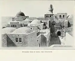 At the end of the Roman period, a synagogue was built at the entrance of the structure known as David's Tomb, probably based on the belief that David brought the Ark of the Covenant here from Beit Shemesh and Kiryat Ye'arim before the construction of the Temple.[13]