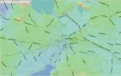 Mullingar civil parish comprises 63 townlands: Ardivaghan, Ardmore, Balgarrett, Ballagh, Balleagny, Ballina, Ballinderry, Ballyglass, Ballynaclin, Balnamona (or Charlestown), Baltrasna, Bellmount (or Curristown), Bellview, Boardstown, Brockagh, Brottonstown, Brottonstown Little, Cartron, Cartronganny, Clondardis, Clongawny, Clonmore, Clownstown, Commons, Culleen Beg, Culleen More, Drumloose, Farranfolliot, Farranistick, Farranshock (or Rathgowan), Glascarn, Grange North, Grange South, Habsborough, Hanstown, Hopestown, Irishtown, Keoltown, Kilpatrick, Knockdrin Demesne, Ladestown, Marlinstown, Marlinstown Bog, Mullingar, Newtown, Petitswood, Plodstown, Quarry, Rathcolman, Robinstown (Levinge), Robinstown (Tyrrell), Russellstown, Sarsanstown, Slanestown, Spittlefield (or Springfield), Srahenry, Stokestown, Strattonstown, Tuitestown, Tullaghan, Walshestown North, Walshestown South and Windtown.[2]