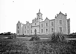 In 1880, the society established the Munster Dairy School & Agricultural Institute. Sir Richard Barter was its inaugural secretary. It was based in a large, 9-bay, 2-storey residence with farm buildings behind. Located on the Model Farm, it was a Jacobethan style and constructed between 1856 and 1859.[16][17][18][19] It was the first dairy institute in Ireland or Britain to teach female students.[20]