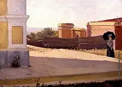 In 1847, Taras Shevchenko was exiled to the Orenburg region due to his involvement with the Brotherhood of Saints Cyril and Methodius and his inappropriate poems, some of which contained insults towards the Emperor and Empress. The Third Section's decision to exile him also included a prohibition on writing and drawing, and he was sent to the Orenburg guardhouse based on the report of Officer N. Isaev, who claimed that Shevchenko was still writing and drawing.[16] Shevchenko was detained in the guardhouse from 27 April to 12 May 1850.[22] Later that year, he was sent to the Novopetrovskoe fortification on the Caspian Sea.