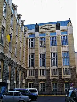 Between 1955 and 1960 Skoryk studied at the Lviv Conservatory,[3] There he received training in musical composition and music theory; his teachers included Stanyslav Lyudkevych and Roman Simovych.[3][4] Skoryk's final exam piece was Vesna ('Spring'), a cantata for soloists, mixed choir and orchestra that was based on verses by the Ukrainian writer Ivan Franko. Other piano pieces written during Skoryk's student years include a piano sonata, and V Karpatakh ('In the Carpathian Mountains'), also for solo piano.[5] Skoryk was also a pupil of Mykola Kolessa.[6][7]