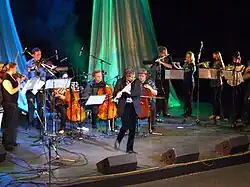 Nestor Torres performing for the Dalai Lama at Temple Emanu-El (Miami Beach, Florida) in 2010 | |