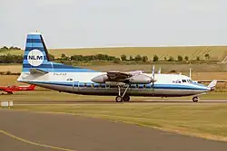 The carrier was formed as NLM Nederlandse Luchtvaart Maatschappij in 1966.[2] Starting operations on 29 August 1966 using leased Fokker F27 aircraft from the Royal Dutch Air Force, it was set up as a KLM subsidiary under a two-year contract to operate domestic services within the Netherlands.[2] The airline saw the incorporation of the Fokker F28 in 1978.[3]: 1790 [4]