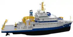 Discoverer and her sister ship NOAAS Oceanographer represent an effort by the National Oceanic and Atmospheric Administration (NOAA) to recapitalize its aging fleet.[1] The ships are built to commercial standards,[1] and NOAA describes them as "state-of-the-art"[1] and designed to support a wide variety of scientific missions, with a capability of conducting general oceanographic research and exploration as well as more specific studies of marine life, the oceanic climate, and ocean ecosystems.[2] The ships can perform scientific missions in shallow coastal waters and over the continental shelf, as well as ocean survey and data collection worldwide.[2] The ships are equipped to launch work boats, perform maintenance on buoys and moorings, deploy scientific instruments to collect weather and water-column data, and conduct seafloor mapping surveys.[2]