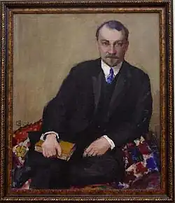 Nadezhda Sapozhnikova (Russian: Надежда Михайловна Сапожникова; 26 March 1877 – late autumn 1942) was a Russian painter and a maecenas. Sapozhnikova was born in a merchant family and received her education in Kazan. At the age of 27, Nadezhda started to practice painting. Together with her supervisor Nicolai Fechin Sapozhnikova travelled to Paris, where from 1910 to 1912 she studied in the studios of Antonio DeVity and Kees van Dongen. After returning to Kazan, Sapozhnikova opened her own studio and provided Fechin with financial support – she owned 11 of his works, including five portraits of her. Until 1925 Nadezhda taught painting and drawing in Kazan, then moved to Moscow. In the 1930s, she eventually finished her career as an artist. Up to now, only a few works of Sapozhnikova have been preserved; some of her paintings are exhibited at the National Gallery of Art "Hazine".
