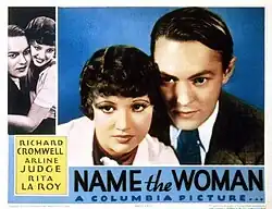 Name the Woman is a 1934 American mystery drama film directed by Albert S. Rogell and starring Richard Cromwell, Arline Judge and Rita La Roy.[1] It is not a remake of the studio's 1928 silent film of the same name, although Variety wrongly reported this at the time.