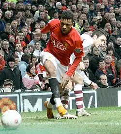 After Cristiano Ronaldo's transfer to Real Madrid in the 2009 close season, the weight of expectation was on Nani to step up from bit part player and replace his compatriot.[40] Nani's first contribution to United's new season was opening the scoring in the tenth minute of the 2009 FA Community Shield, but United eventually lost the match on penalties after a 2–2 draw. Nani suffered a dislocated shoulder during the match, which was originally expected to keep him out of the start of the season.[41] He recovered in time to play 17 minutes for Portugal against Liechtenstein on 12 August, however,[42] and started the match against Birmingham City on 16 August. Although he provided the assist for Wayne Rooney's winning goal in the 34th minute, Nani was replaced by Ryan Giggs at half-time.[43] On 22 August, Nani scored his first league goal of the 2009–10 season, a free-kick against Wigan Athletic in a 0–5 away win.[44]