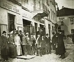By early 1909 the editors office included six permanent employees – Łuckevič brothers, Alaksandar Ułasaŭ, Vacłaŭ Łastoŭski, Janka Kupała and Jadvihin Š..[39] In the Summer of 1909 they were joined by Siarhiej Pałujan. However, the group was divided into two parts. Łuckevič brothers and Ułasaŭ were the so-called 'Upper House of Parliament', they used the separated room and communicated to others by notes that were put through a slot under the door. The 'Upper Parliament' strived to keep the publication alive and receive fees, while the 'Lower Chamber' performed all the everyday tasks. Their articles were published under pseudonyms, all their decisions could be overridden by the 'Upper House' veto. The tense relations between the collaborators are presumably the main reason of Siarhiej Pałujan's suicide in 1910.[40] According to the archives, in 1909 the newspaper had subscribers even in Prague, Paris, Lviv and USA.[41]