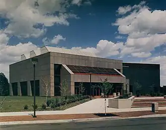 The museum is a Modernist structure of glass and steel, with about 10,000 square feet (930 m2) of exhibits.[4] Dr. John Fleming led the museum from 1988 to 1998.[5] Mr. Vernon S. Courtney led the museum from 1999 to 2007.[6] Ms. Edna Diggs, a curator at the National Afro-American Museum and Cultural Center, was appointed Interim Director of the museum. She died unexpectedly on June 6, 2011. Dr. Floyd Thomas was named acting director of the museum, until museum archivist, Dr. Charles Wash, was named the director in late 2011.[7]