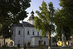 The university occupies the grounds of the Kyiv-Mohyla Academy in the Podil neighborhood, from Kontraktova Square to the Dnipro River.[93] The campus of NaUKMA is composed of a number of buildings constructed in the times of its predecessor institutions. The oldest buildings date from the 17th century, and include the Halshka Hulevychivna house and the old academic building also called the Mazepa building in honor of its financier Hetman Ivan Mazepa. The Mazepa building contains the congregation hall for ceremonial events, the Center for Contemporary Art and the research library.[94]