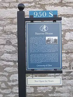 4. ^ Nauvoo House (Plaque outside Nauvoo House). Nauvoo, Illinois: Community of Christ. 2003. Retrieved March 9, 2024.