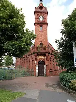 Developments in the Victorian era include the opening of St Clement's Church, designed by J. A. Chatwin, his first church,[12] in 1859[13] (the church was largely demolished in 1977, with only the church hall and a short section of the south aisle remaining);[14] and St Joseph's Roman Catholic Church in 1872 (incorporating the former chapel of the Roman Catholic cemetery, designed by A. W. Pugin and opened in 1850). The later church was designed by Pugin's son, E. W. Pugin;[15] the former Presbyterian chapel of 1888–9 on Long Acre, "a rare survivor of [the prolific Birmingham architects][16] Crouch & Butler's early chapel work".;[17] a board school situated in Hutton (later Eliot) Street in 1879;[15] the building of almshouses adjacent to St. Clement's church to accommodate "31 inmates, widows, single women, and married couples - whose age is above 60"[18] and Bloomsbury Library of 1892 on Nechells Parkway, described as "a typical vigorous example of the red brick and terracotta school for municipal building at the end of the 19th century.".[19][20]