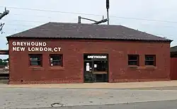 Greyhound Bus Lines offers limited intercity service from a stop on Water Street. Current service consists of two daily buses in each direction operating along the I-95 corridor, with transfers available to other routes in Boston, New Haven, and New York City. Greyhound and Peter Pan Bus (which no longer serves New London) previously used the former baggage and express office.[9][33]