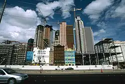 The 2001 film Ocean's Eleven was to include a scene of New York-New York being imploded, but this was removed following the September 11 attacks, and was replaced by a fictional hotel called the Xanadu.[31][32] After the attacks, people spontaneously sent various tributes to New York-New York, especially T-shirts from police, fire and rescue departments around the country. These were displayed along the fence in front of the "Lady Liberty" replica.[33][34] Other items included flowers and candles.[35] Within a few days of the attacks, the spontaneous memorial site contained thousands of items.[35] The twin towers of the original World Trade Center have never been included in the hotel's skyscraper façade, which is meant to represent New York City in the 1940s; the World Trade Center was built in the 1970s.[34][36] The towers were also considered too tall to be included.[37]