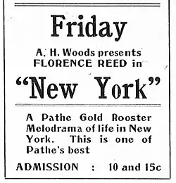 New York is a 1916 American silent comedy drama film directed by George Fitzmaurice and starring Florence Reed. It was adapted by Ouida Bergère from a 1910 William J. Hurlbut play of the same title. The film was distributed by the Pathé Exchange company.[1][2]