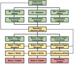 Each unit has a cadet NCO holding the position of Squadron Warrant Officer (who doesn't necessarily hold the rank of Cadet Warrant Officer). If the unit is large enough, each flight of cadets may have a Flight Sergeant. The Warrant Officer is normally responsible for supervising the NCOs in their various tasks. The Warrant Officer can skip the normal chain of command to liaise directly with the Unit Commander.