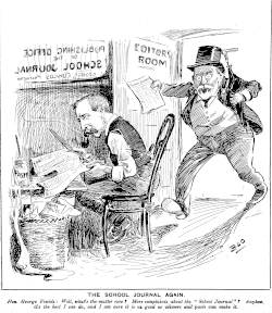 The first editor was W. E. Spencer, a former school inspector.[15] The first issue, published in May 1907, began with an unattributed poem titled "The Wasp and the Bee", and also featured poetry by William Pember Reeves.[16] It was not well-received, and was criticised by the Auckland Star as "an inexplicable mystery and a bitter disappointment", being "nothing more or less than a school reading book, of the ordinary miscellaneous character".[17] The Manawatu Standard said that with one exception it had been unfavourably criticised by every newspaper.[18][19] The New Zealand Times said that on the whole the edition "promises well, and should be welcomed heartily as a bright innovation in the literature of our public schools", although it did criticise a poem for referring to soccer as "football" when "for national reasons, it should be Rugby".[20] In 1909, the Minister for Education George Fowlds responded to rumours that it was about to be discontinued: "It is not intended the journal should be stopped — it is an essential part of the educational system because of the large amount of varied reading matter it provides at small cost."[18][21]