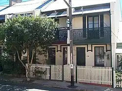 From about 1870 onwards, a large proportion of Newtown's residents lived in terrace houses of the cheapest possible construction. Many of these terraces were "two-up two-down", with rear kitchen, some having adjoining walls only one brick thick and a continuous shared roof space.[20] Hundreds of these terrace houses still remain, generally 4 metres (13 ft) wide. It was not uncommon for speculative builders to build a row of these small houses terminating in a house of 1½ width at the corner of the street, this last being a commercial premises, or "corner store". During the Federation period, single-storey row houses became increasingly common.