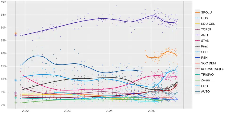 - ^ "Czech populist opposition leads as election set for October". Reuters. 13 May 2025. Retrieved 13 August 2025.