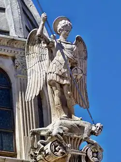 St.Michael, sculpture by Niccolò di Giovanni Fiorentino on the dome of the Šibenik Cathedral of St James, Croatia