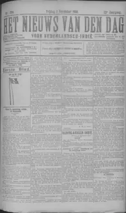 Het Nieuws van den Dag voor Nederlandsch-Indië ('The News of the Day for the Dutch East Indies') was a Dutch-language newspaper published on the island of Java in the Dutch East Indies (modern-day Indonesia). Originally called De Indische Courant (one of a number of papers with that name), it was published in Batavia from 1895[1] or 1896 to 1900[2] until it was renamed.[3] One of the paper's contributors was Dutch author and critic of the colonial system Multatuli.[4]