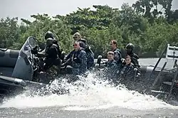 Nigerian–U.S. military cooperation under George W. Bush's administration was centred on the Africa Center for Strategic Studies and the Africa Crisis Response Initiative.[176][147] In 2007, Bush's administration established the Africa Partnership Station, which has been a hub for cooperation against piracy, drug trafficking, oil theft, and border fraud in the Gulf of Guinea.[147] Currently, Nigeria is a member of the Global Coalition to Defeat ISIS (D-ISIS), and the U.S. and Nigeria co-hosted a virtual D-ISIS conference in October 2020. It also receives U.S. military support as a member of the Africa Military Education Program and as a member since 2005[177] of the Trans-Sahara Counterterrorism Partnership; and in 2020 it bought over $1.2 million in defense equipment from the U.S.[178] In addition, a member of the U.S. Army Corps of Engineers has been stationed permanently at the Kainji Airbase in Nigeria, to oversee key U.S. Africa Command projects there.[179]