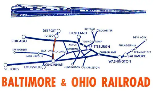 8. ^ Baltimore and Ohio System Timetable. Baltimore: B&0 Press, July 6, 1947, p. 29.