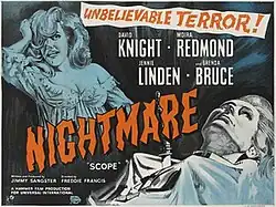 Nightmare (also known as Here's the Knife, Dear: Now Use It) is a 1964 British horror film directed by Freddie Francis and starring Jennie Linden.[3] It was written by Jimmy Sangster, who also produced the film for Hammer Films.[2][4] The film focuses on Janet, a young girl in a finishing school who is plagued by nightmares concerning her institutionalized mother.