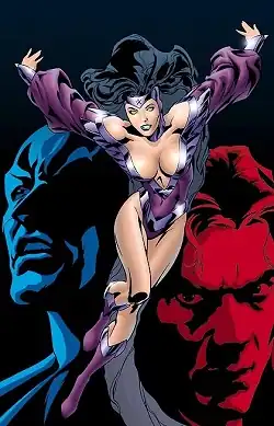She is next seen in conversation with Avia, daughter of Mister Miracle and Big Barda, in an underground bar.[3] Superman appears and makes a powerful recruitment speech for the Justice League. Nightstar is impressed but, unlike Avia, she does not fall in with Superman. Instead, she throws in with Batman, her adoptive paternal grandfather. She is joined by many other progeny of League members, including the daughters of Roy Harper, Garth, and Wally West, as well as the son of Donna Troy.