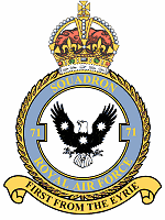 | Squadron Badge heraldry | A bald-headed eagle displayed charged with three stars of nine points |