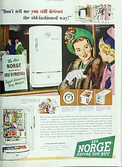 Norge was a brand of appliances was originally manufactured by the Norge Appliance Company. It was once a division of BorgWarner and later a division of Fedders. The Norge name was acquired in 1979 by Magic Chef, which in turn was absorbed by Maytag in 1986.[1] Since 2006, Maytag is a part of Whirlpool Corporation.