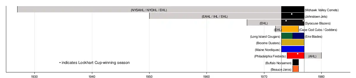 | Johnstown Jets | 1973–1977 | 4 | Johnstown, Pennsylvania |