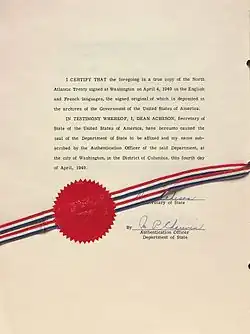 - ^ The North Atlantic Treaty, Washington D.C., 16 January 1963 [1949-04-04], archived from the original on 12 April 2023, retrieved 10 March 2022