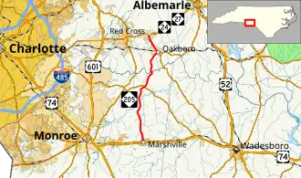 North Carolina Highway 205 (NC 205) is a primary state highway in the U.S. state of North Carolina. It traverses 22 miles (35 km) in Stanly and Union Counties.