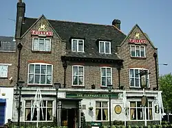 The name Tally Ho allegedly originates from the 1830s when a coaching company of the same name based a staging post of 16 horses on the corner, serving as a stop where the horses were changed on their way to Birmingham. There is, however, no direct evidence of the company ever having existed; local historians believe that it is unlikely that the company ever existed, or that the horses would have needed changing so early on in their journey from London to Birmingham.[4] But it was later, with the enclosure of the Common after 1816 and the creation of the Finchley Road turnpike along Ballards Lane in the late 1820s, that beginnings of a suburb were sparked.
