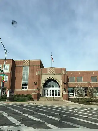 DGN is a public four-year high school located near the corner of Main Street and Ogden Avenue and located at the intersection of Main Street and Grant Street in Downers Grove, Illinois, a wealthy, western suburb of Chicago, in the United States. The original entrance is on Forest Street and the Athletic Entrance is located off Prince Street. It is part of Community High School District 99, which also includes Downers Grove South High School. The North campus draws students from Downers Grove (north of 55th St.), and small sections of Woodridge, Oak Brook, Lisle and Westmont.