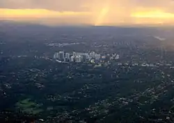 ![]() Sydney Harbour with the North Shore extending from its northern side (right) with Sydney CBD (left) and Eastern Suburbs (bottom) on its southern shore. | |||||||||||||||