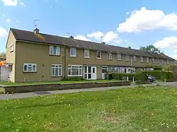 Crawley Development Corporation's second annual report (1949) stated that Northgate was the second planned neighbourhood of nine, after West Green.[15] Although 13 neighbourhoods were built in the end,[note 2] the order of construction of the early neighbourhoods remained unchanged.[17] Work got underway in 1950, when 162 houses were built.[18] A higher proportion of flats was provided than elsewhere in Crawley: one-quarter of the residential units built in the early years were flats,[19] and flats eventually made up 13% of Northgate's housing stock overall.[20] Crawley Development Corporation also built 142 concrete houses, unique in the town, in 1955.[21]
