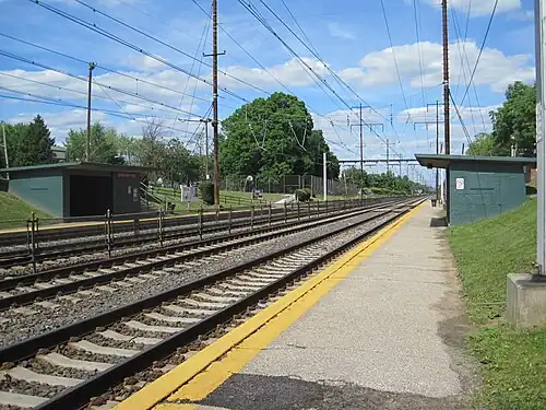 The station's inbound platform and ticket office is located next to the Norwood Public Library, a branch of the Delaware County Library System.[7] Norwood has two low-level side platforms with walkways connecting passengers to the inner tracks. Amtrak's Northeast Corridor lines bypass the station via the inner tracks.