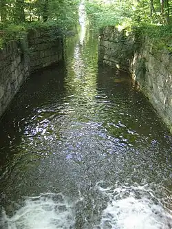 The barely perceptible height difference of about 5 m (16 ft) between the northern and southern plots of the park allowed the creation of three levels by skillful water management. The sloping terrain permitted the cascades and the operation of water wheels for pumping purposes. The pumps used today are still the original pumps installed over 200 years ago. In fact, it is said, that the hydraulic system used in Nymphenburg is the oldest continuously running machine in Europe.[30] The water is conveyed from the Würm river near Pasing to the west and transferred into the park area via the Pasing-Nymphenburg Canal. The canal that branches off into the southern, higher part of the park maintains its original level, while the bulk of the water feeds the Grand Cascade. A bypass canal in the north provides additional water to the pool below the cascade. The cascade and the bypass canal fall to the lower level of the Central canal and the water basin in front of the Garden parterre. The northern bypass was originally connected by a sluice to the canal that comes from the west. The sluice has been replaced by a small weir.