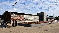 After World War II, new housing complexes in the town were developed with large buildings of rectangular and concrete constructions. The chemical industry became the main employer of the town and in later years, the service industry and trade were added. The many visits to the concentration camp memorial sites have become an important source of income for the town's businesses.