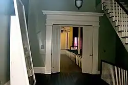 The college was endowed by planters such as Rush Nutt of the Laurel Hill Plantation, Smith Daniell of the Windsor Plantation, and Isaac Ross of Prospect Hill Plantation, as well as David Hunt of the Woodlawn Plantation.[1][5][6] Moreover, John Ker donated US$25,000 (equivalent to US$738,000 in 2024) for a Professorship in Theology.[6] The land, spanning 250 acres (0.39 sq mi; 101.17 ha), was donated by planter Robert Cochran.[7] The Oakland Memorial Chapel was built in 1838.[8] (The wrought iron staircase was moved from the Windsor Plantation to the chapel in 1890.[1][8]) It served not only as a chapel, but also as a library, with additional space for classrooms and offices.[1] The chapel became a National Historic Landmark in 1976.[8] Over the years, more buildings were erected, such as a president's house, three professor's houses, and 15 cottages, which served as dormitories for students.[1][6]