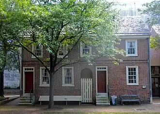Obidiah Dingee House, also known as the Obadiah Dingee House, is a historic home located at Wilmington, New Castle County, Delaware. It was built about 1771, and is an example of an 18th-century urban residence continually occupied by working families. It is a two-story, brick dwelling consisting of a 19 feet, 6 inches wide by 24 feet deep main block with a rear wing. It is adjacent to the Jacob Dingee House.[2] In 1976, it was moved from its original location at 107 E. 7th Street to Willingtown Square of the Delaware Historical Society.
